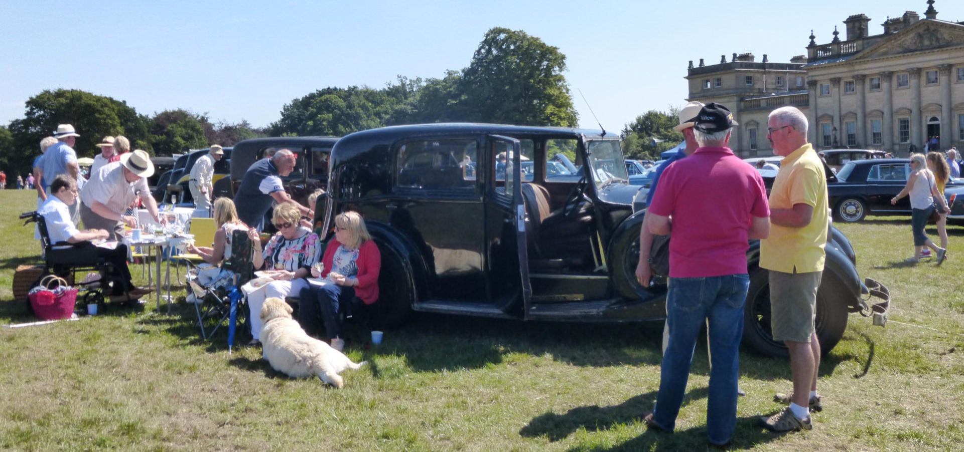 The 43rd North of England Rally was held in the grounds of Harewood House near Leeds. The house sits in the heart of Yorkshire and is one of the treasures of England. It was built in the 18th century by Edwin Lascelles the first Lord Harewood, who inherited the Harewood estate on his father's death in 1753. Edwin devoted his energies to creating a grand country house. He chose as his architect the young John Carr, of York, with assistance from Robert Adam. Carr used local millstone grit for the house exterior, and even the interior bricks creating a house composed of a central block joined by single-storey links to wings on either side. The front entrance is through a massive pediment supported on six Corinthian columns that still exist today. The Harewood estate is owned by David and Diane Lascelles, the Earl and Countess of Harewood, who manage the everyday running of the estate and the surrounding countryside.After a week of rainy days, we were treated to an overcast start to Sunday, so it was fingers crossed for it to stay fine. As members arrived, approximately 200 cars were directed to their designated parking place by Jim Clark and his merry band of marshals. As lunch time approached, car boots were opened, tables erected, chairs unfolded and picnics arranged in preparation for the ‘faint from hunger’ members to partake in refreshing sustenance. As the day progressed individuals spent the afternoon socialising with friends and members of the public who enquired about the cars. Fortunately, the weather held for the presentation of the 8 trophies to the winners, then came the parade of cars to round off the day. Thanks to all participants, especially to all those hard-working members for organising and directing such a successful event. Here’s looking forward to the 44th North of England Rally next year.