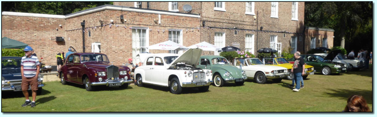 North of England Rally at Harewood House near Leeds - 6th August 2023The 43rd North of England Rally was held in the grounds of Harewood House near Leeds. The house sits in the heart of Yorkshire and is one of the treasures of England. It was built in the 18th century by Edwin Lascelles the first Lord Harewood, who inherited the Harewood estate on his father's death in 1753. Edwin devoted his energies to creating a grand country house. He chose as his architect the young John Carr, of York, with assistance from Robert Adam. Carr used local millstone grit for the house exterior, and even the interior bricks creating a house composed of a central block joined by single-storey links to wings on either side. The front entrance is through a massive pediment supported on six Corinthian columns that still exist today. The Harewood Estate is owned by David and Diane Lascelles, the Earl and Countess of Harewood, who manage the everyday running of the estate and the surrounding countryside.After a week of rainy days, we were treated to an overcast start to Sunday, so it was fingers crossed for it to stay fine. As members arrived, approximately 200 cars were directed to their designated parking place by Jim Clark and his merry band of marshals. As lunch time approached, car boots were opened, tables erected, chairs unfolded and picnics arranged in preparation for the ‘faint from hunger’ members to partake in refreshing sustenance. As the day progressed individuals spent the afternoon socialising with friends and members of the public who enquired about the cars. Fortunately, the weather held for the presentation of the 8 trophies to the winners, then came the parade of cars to round off the day. Thanks to all participants, especially to all those hard-working members for organising and directing such a successful event. Here’s looking forward to the 44th North of England Rally next year.